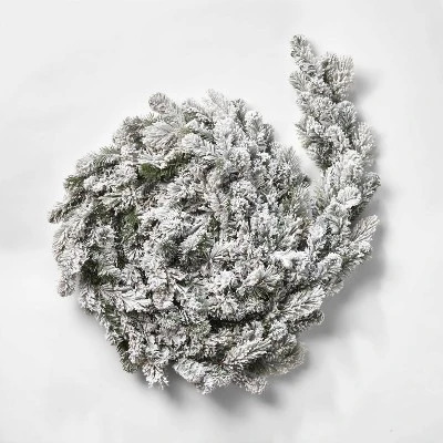 Add a wintry touch to your home with this 18-Foot Pre-lit Flocked Cashmere Artificial Garland Clear Lights from Wondershop™. This artificial Christmas garland makes a wonderful addition to your seasonal decorations. It features natural-looking snow-flocked pine branches that are pre-lit with 70 clear light bulbs to cast a welcoming holiday glow. This ready-to-use garland is suitable for both indoor and sheltered outdoor use. Drape it over your fireplace, porch railing, front door or simply place on your dining table to add festive flair.