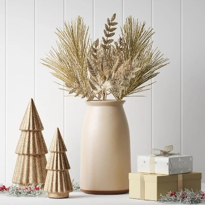 Make your holiday decor shine with this 4-Piece Christmas Pick Set from Wondershop™. The Christmas picks set includes artificial hard needle and mixed leaves picks in a champagne hue for a fall inspired look. These picks require zero to minimal upkeep and brings a touch festive charm to your Christmas decor. Place them in a vase arrangement or stick them in your tree to create an eye-catching display.