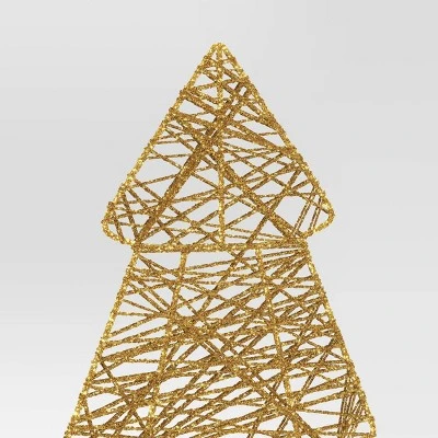 Bring a touch of festive warmth to your home decor with this Christmas LED Tree from Wondershop™. Made of metal, this holiday decor features a yellow Christmas tree with a mesh design boasting multiple LEDs that cast a bright glow for merry ambiance. This 12.75-inch tree sits on a wooden base and requires three AA alkaline batteries (not included).