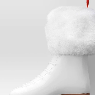 Add wintry flair to your holiday tree with this Christmas Skate Ornament from Wondershop™. Made of polyresin, this Christmas ornament features white skates with fur detailing and sparkly bases to brings a touch of shine to your tree. Designed for indoor use, this ornament also features an attached red loop that makes it easy to hang from your tree’s branches.